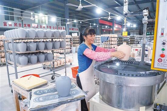 海珠区驻大埔县对口帮扶工作队队长吴东华介绍,海珠(大埔)产业园分两部分,其一是以陶瓷为主导产业的高陂园区,进驻9家企业,厂房已全面建成;将以高陂青花瓷特色小镇建设为契机,把高陂园区打造成青花瓷特色小镇核心区,着力推动园区提档升级、企业提质增效。以精细电子加工产业为主导的大沙坝县城工业小区,已于去年8月纳入海珠(大埔)产业园。