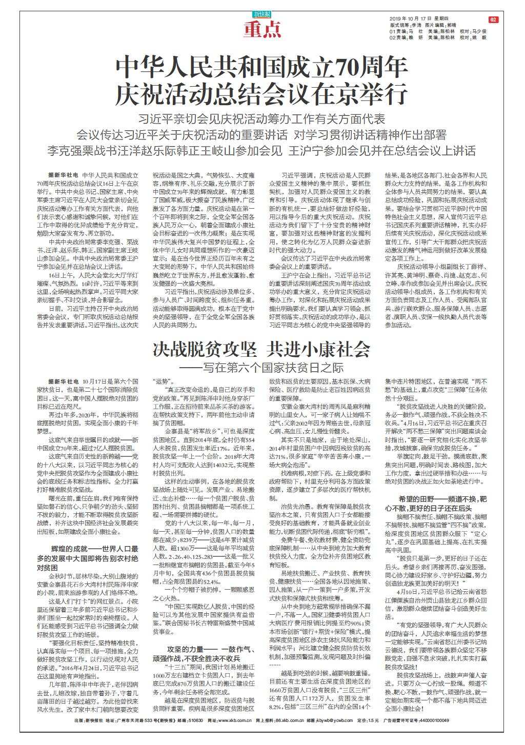 中华人民共和国成立70周年 庆祝活动总结会议在京举行