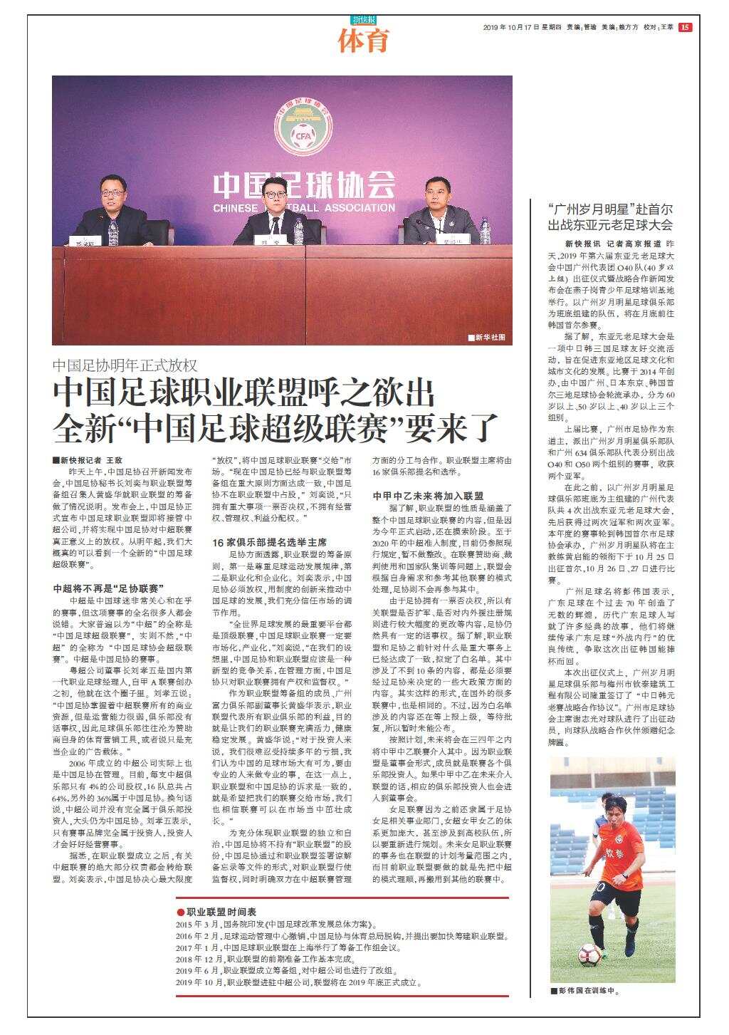 中国足球职业联盟呼之欲出 全新“中国足球超级联赛”要来了