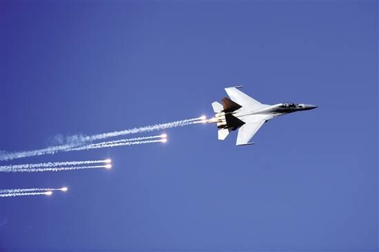 ■空军歼-16战机进行单机空中展示。新华社发