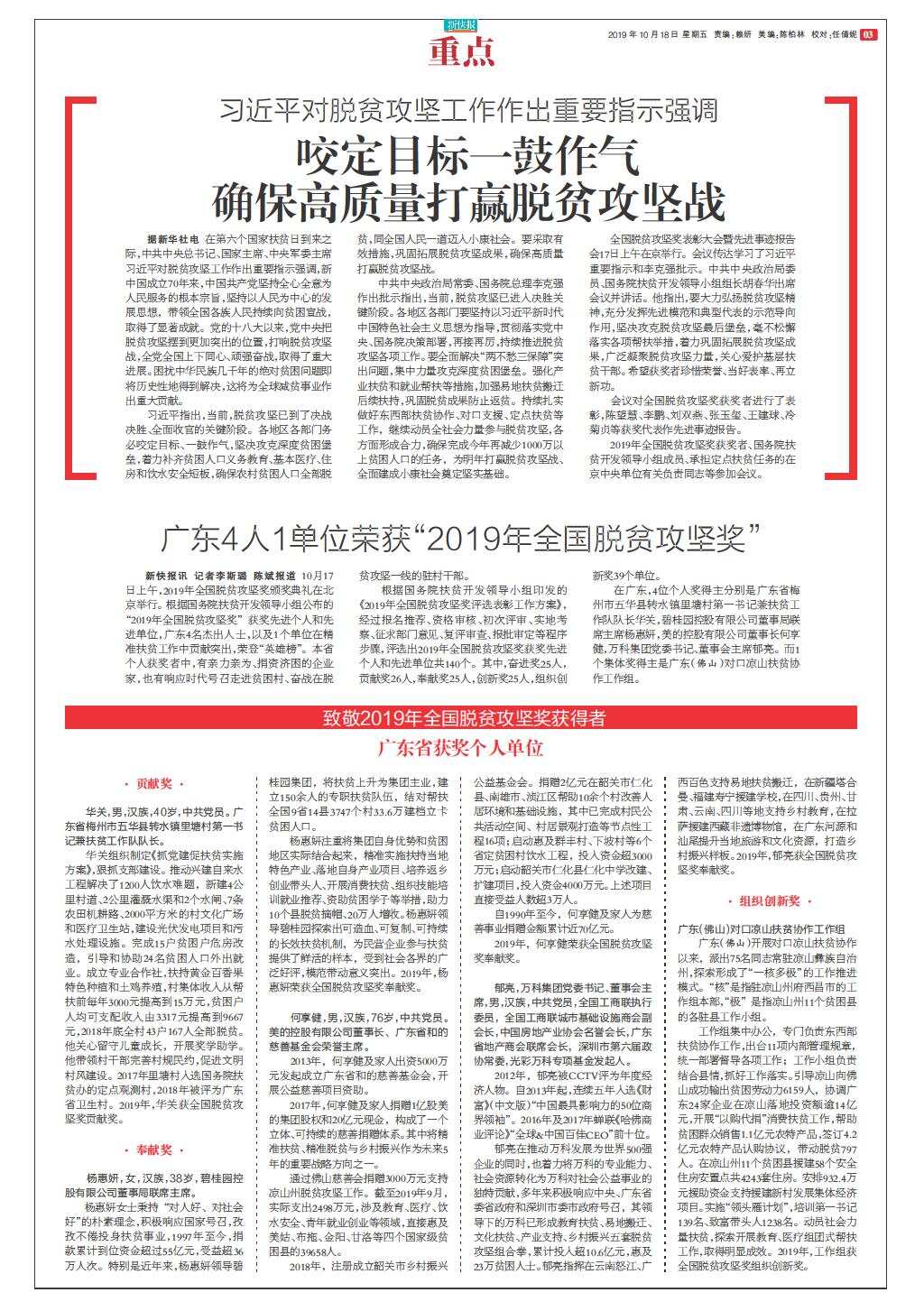 广东4人1单位荣获“2019年全国脱贫攻坚奖”