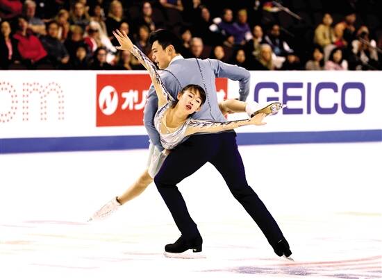 据新华社电 中国花样滑冰组合彭程/金杨当地时间19日在拉斯维加斯举行的花样滑冰大奖赛美国站比赛中夺得双人滑冠军,这是彭程/金杨首次在花样滑冰大奖赛中夺冠。彭程/金杨自由滑的曲目是《云图》,两人高质量完成了连跳和三周捻转,不过却在三周抛跳上有所失误。最终,这对今年四大洲花滑锦标赛的季军组合自由滑得到128.16分,并以200.89分的总分首次问鼎大奖赛。