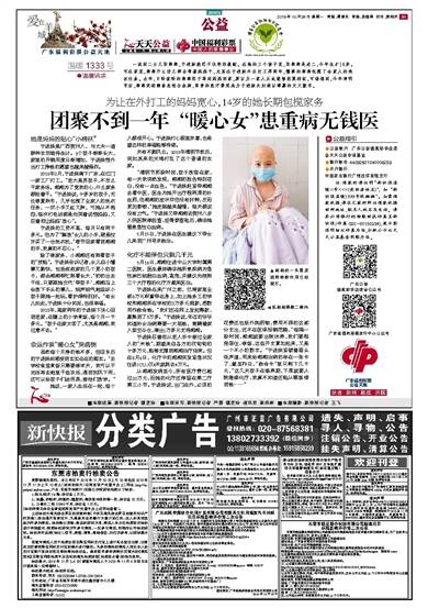注:捐款时请注明“新快报温暖×号×××(受助者姓名)”, 如“新快报温暖1333号张湘湘”。如需捐款收据,请在汇款时附注捐款收据回邮地址、联系人姓名及电话。请务必将银行的转账回执传真至新快报(传真:020-85180284),逐日登报明细以传真为准,分批公示以天天公益基金到账为准。