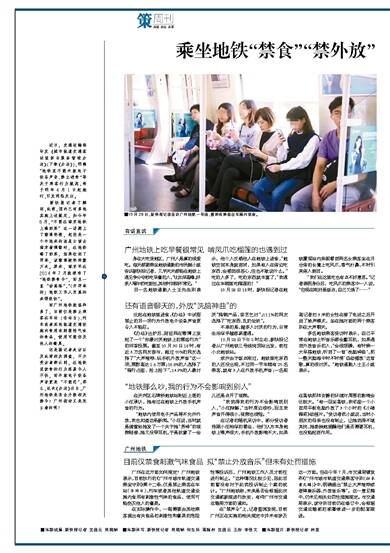 在“禁声令”上,记者查阅发现,目前广州正在实施的相关规定中并未有涉及这一方面。但在今年7月,市交通局曾发布《广州市城市轨道交通乘客守则(征求意见稿)》中,明确提出“禁止大声喧哗或者弹奏乐器、外放音乐等”。这一意见稿中,仍未见相关处罚性措施规定。市交通局表示,该守则目前仍在修订中,会根据交通运输部的部署做进一步的配套跟进。