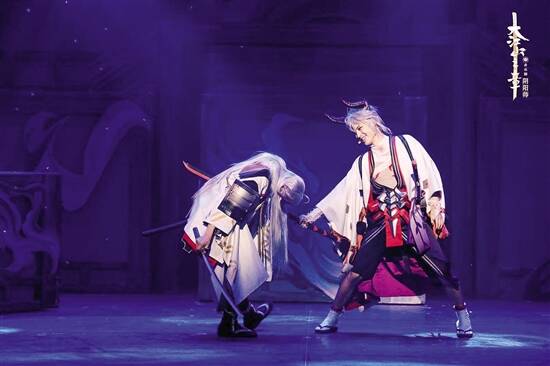 《阴阳师》是由网易游戏自主研发的3D日式和风回合制RPG手游,游戏中的和风元素是以《源氏物语》中的古日本平安时代为背景设计的,其唯美的画风与精致的游戏原声,让每位玩家都体验到平安古都的韵味,备受喜爱。而传统的音乐剧正好和这种韵味相得益彰。音乐剧《阴阳师》“大江山之章”打破了二次元与三次元的文化壁垒,将游戏与传统艺术相融合,演出后收获了无数好评。
