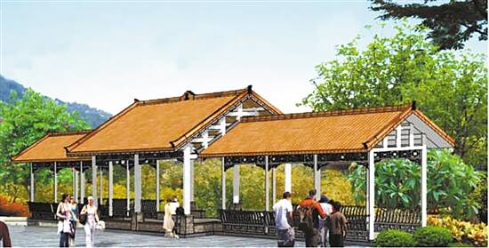 招标公告提出,计划在景区新建共9组亭廊,休息平台两个。通过平整场地、开挖基础,设计钢筋混凝土基础结构亭廊主题,中式风格琉璃瓦坡屋顶,漏花窗装饰,配植休息坐凳。同时设计相应的附属广场,花岗石透水构造铺砌。亭廊周边绿化整治主要通过淘汰老弱植物,增加开花及香味植物营造花境效果。