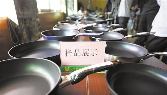 ■通报会上展示的部分不粘锅样品。