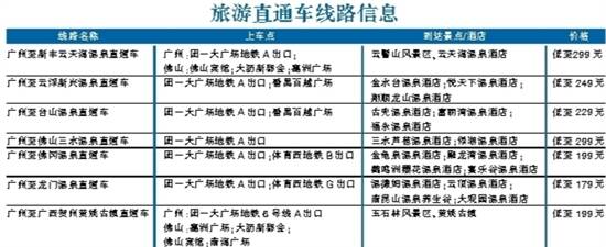 上车点涵盖广州体育西地铁站、团一大广场、海珠广场、番禺百越广场,以及佛山宾馆、大沥新都会、嘉洲广场、南海广场等,部分景点两天团低至179元/人。广大市民也可以在公众号上对直通车的上下客点、合作酒店、景点服务提出意见和建议。