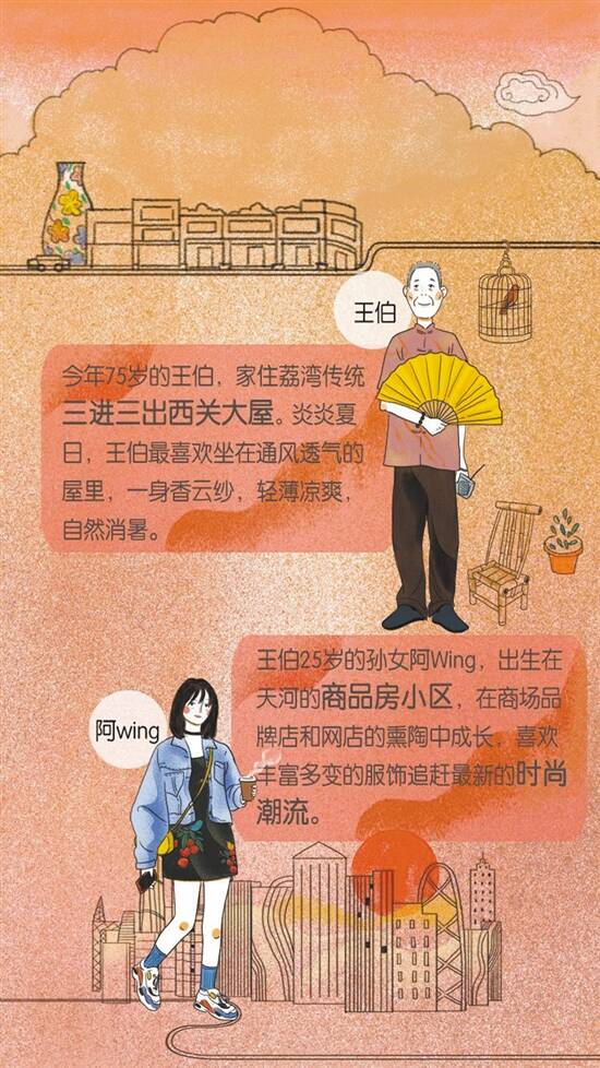 2019年11月28日,“广府人家 时光城事”展览将在广州太古汇商场3楼玻璃盒启动,展览通过广府人家的“衣”“食”“居”“玩”“赏”五大生活场景,展现不同年代的广府人各自带着他们的体验和思考,对广府文化进行着坚守和传承——王伯居住在三进三出的西关大屋,是一个典型的传统广府老人,他的孙女阿Wing,则是居住和工作在天河商圈的新新人类。老一辈和新一代,在生活方式和人生观念上既有碰撞,也有共鸣,但其中也隐藏着不变的根和魂,也就是对自身文化脉络一种无法断却的认同和延续。