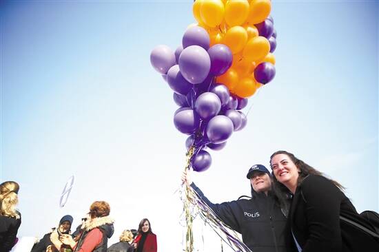 2019年11月25日,土耳其迪兹杰,两名女性在当地纪念国际消除对妇女暴力日的活动现场合影。11月25日是国际消除对妇女暴力日,也被称作“国际反家庭暴力日”,多国举行相关活动进行纪念。VCG供图