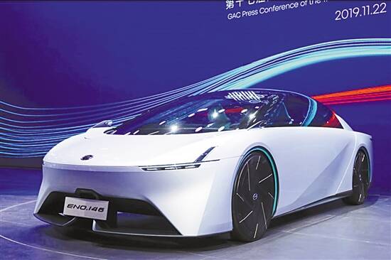 ENO.146概念车是广汽研究院自主研发的以量产为导向的“全球低风阻新纪录电动乘用车”。概念车以全新“矢量动能”造型语言,带来新能源和数字化时代下技术美学新魅力。集合极致空气动力学性能,通过水滴形车身外观、气流雕塑底盘、主动整流气环以及伸缩船形气坝等创新手段,使它的风阻系数(Cd)低至0.146,创造了新的世界纪录。同时,取景于中国市场常见的“三代同堂、两孩家庭”用车需求,ENO.146概念车3000mm的超长轴距,打造出2+1+2+1开创式六座布局,为乘客带来舒心安逸的出行体验。