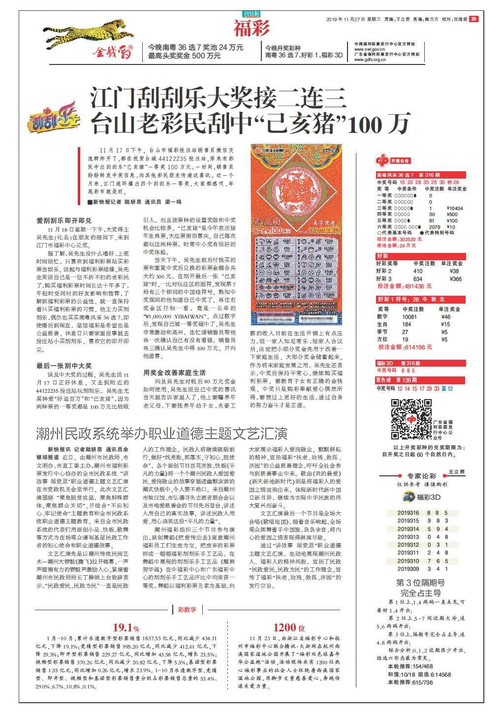 江门刮刮乐大奖接二连三 台山老彩民刮中“己亥猪”100万