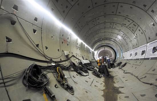 ■在深圳公明水库附近的珠三角水资源配置工程试验段项目,建设者采用地下深埋盾构方式建造。
