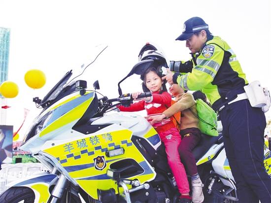 在活动现场中间位置摆放的警用摩托车,正是广州交警应急处突的快速前置力量——“羊城铁骑”所使用的装备。据介绍,该警用摩托车车长2360毫米、车宽950毫米、车高1340毫米,在快速处理事故、疏导交通、缓解拥堵、重大节日或事项安保方面发挥重要作用。