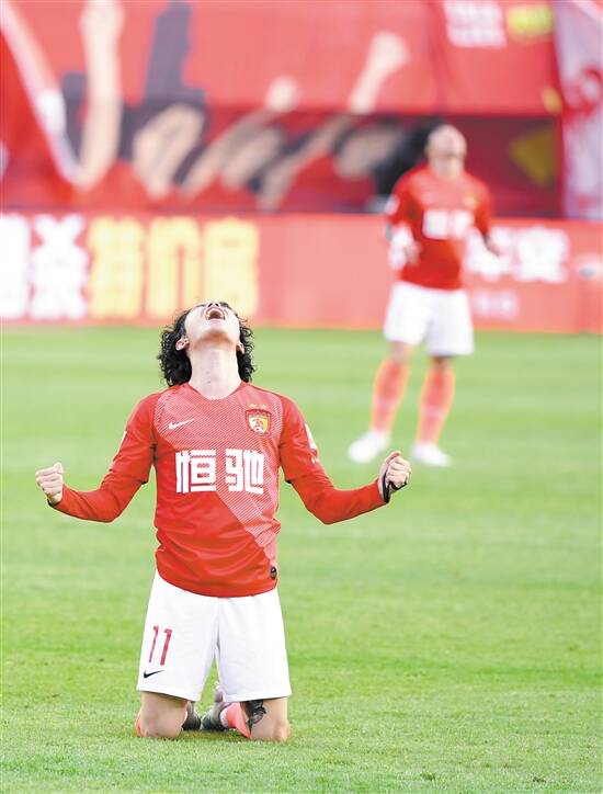 ■广州恒大淘宝队球员张修维在比赛结束后庆祝。 新华社发