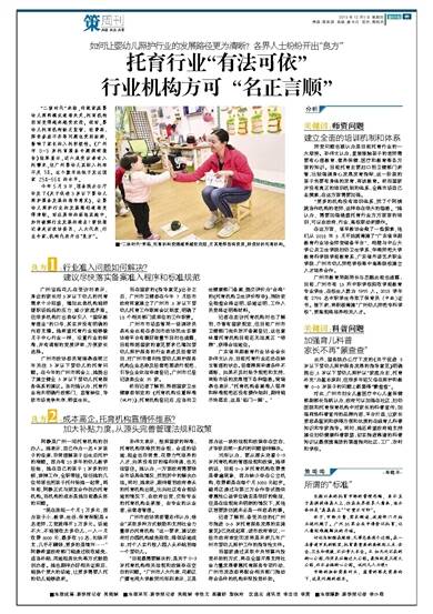 “二孩时代”来临,传统家庭婴幼儿照料模式逐渐失灵,托育机构因而变得越来越受欢迎。然而,婴幼儿托育机构缺乏监管、收费高、师资参差不齐等问题也受到诟病,影响了家长的入托积极性。《广州市 0-3 岁托育服务专题调研报告》结果显示,近六成受访者有入托需求,但广州婴幼儿实际入托率不足 5%。这个数字远低于发达国家 25%-55% 的水平。今年5月9日,国务院办公厅印发了《关于促进3岁以下婴幼儿照护服务发展的指导意见》,让婴幼儿照护行业的发展路径逐渐变得清晰。而在具体的落地实施中,如何破解行业发展的难点?新快报记者走访政协委员、人大代表、行业专家、机构代表开出“良方”。