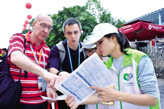 ■广交会,海珠志愿者服务外国客商。受访者供图