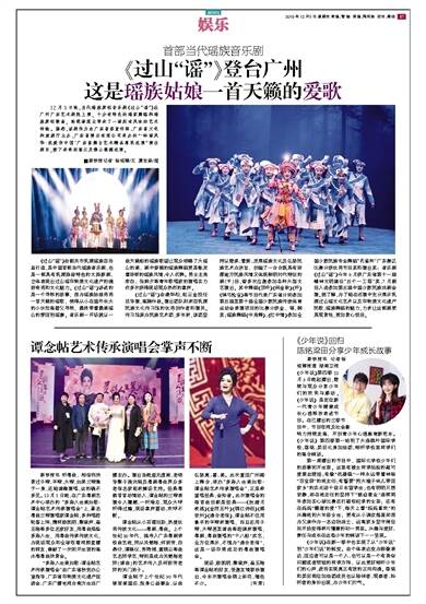 ■新快报记者 徐绍娜/文 夏世焱/图12月3日晚,当代瑶族原创音乐剧《过山“谣”》在广州广东艺术剧院上演,十分有特色的瑶家舞蹈和瑶族原创歌曲,给现场观众带来了一场别有风味的艺术体验。据悉,该剧作为由广东省委宣传部、广东省文化和旅游厅主办、广东省演出有限公司承办的“‘岭南风华·我爱你中国’广东省舞台艺术精品惠民巡演”演出剧目,接下来将到湛江及佛山顺德巡演。