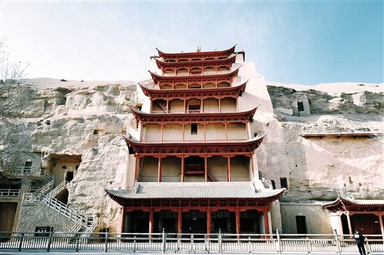 而在大漠深处,有这样一个地方,它可以穿越时空带你领略中原风情和西域特色。它不是稍纵即逝的海市蜃楼,亦非镜花水月的天方夜谭,而是大漠深处的“天外飞仙”。从敦煌市出发,向东南行进 25 公里,经过一片荒芜之地,绿洲出现,这个地方,就是莫高窟。