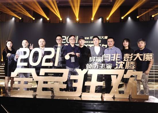 新快报讯 记者聂青报道 近日,电影《全民狂欢》正式在三亚启动,并宣布将于2021年和观众见面。导演闫非、彭大魔,主演沈腾齐齐亮相,吴京也专程来到现场助阵。发布会曝光了一段气氛欢快的小视频,视频混剪了《夏洛特烦恼》和《西虹市首富》的经典片段和幕后花絮,导演闫非、彭大魔和主演沈腾在片中“哈哈哈”的魔性大笑感染了现场的每一位观众,大家都情不自禁跟着视频一起发笑,想起了这三个人在过去的四年里为大家带来的欢乐。