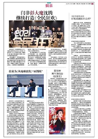当天的记者发布会上,由沈腾担任艺术总监的“全民狂欢影业”正式揭牌,董事长王晨宣布《全民狂欢》电影项目和40集同名连续剧项目将同步启动。