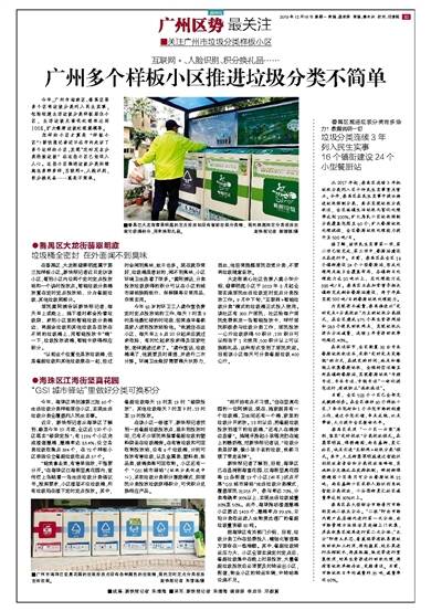 ■关注广州市垃圾分类样板小区今年,广州市海珠区、番禺区等多个区将垃圾分类列入民生实事,包括创建生活垃圾分类样板居住小区,生活垃圾无害化处理率达到100%,扩大餐厨垃圾处理规模等。
