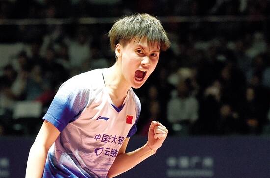 新快报讯 记者王敌报道 昨日,在2019年世界羽联巡回赛年终总决赛(下文简称“广州总决赛”)女单决赛,中国选手陈雨菲12∶21、21∶12、21∶17逆转击败中国台北名将戴资颖,拿到本赛季第七个巡回赛冠军。夺冠之后,陈雨菲将超越戴资颖登上年终世界排名第一的宝座。本赛季陈雨菲上升势头强劲:在3月的全英赛上她首度问鼎冠军,另外还获得瑞士公开赛、澳大利亚公开赛、泰国公开赛和中国福州公开赛、中国香港公开赛女单冠军,在苏杯团体赛上也保持全胜。本次总决赛,陈雨菲延续火热的状态。在小组赛中,她接连战胜何冰娇、辛杜和山口茜,以小组头名的身份进入四强。半决赛中,她又以2∶0横扫山口茜挺进决赛。戴资颖在半决赛2∶0击败日本选手奥原希望,拿到另外一张决赛门票。