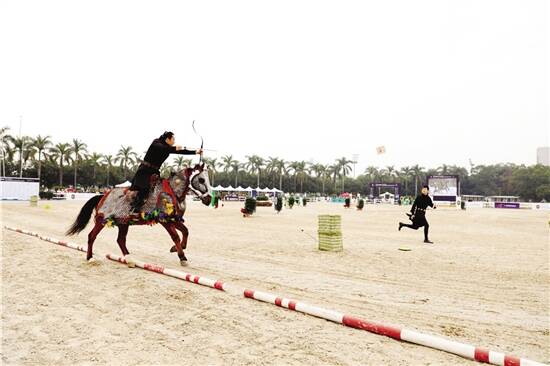 值得一提的是,首届广东省马术节也同时举行。与往届比赛不同,本届总决赛增加了很多马术文化展览展示和表演。例如有复古骑射表演、金牌骑手盛装舞步表演、PONY马展示互动、马术小知识有奖竞猜、亲子手工、马艺术字画展出和内蒙古民族特色展……精彩的活动也吸引了很多家庭到现场观看参与。广东省马术协会常务副会长罗东斌表示,今年凸显马术节这个概念,是希望“观众不仅通过观看赛事,还能观看马术文化表演、展览展示,学习马的历史,让更多的人喜欢、爱上马术这项运动”。