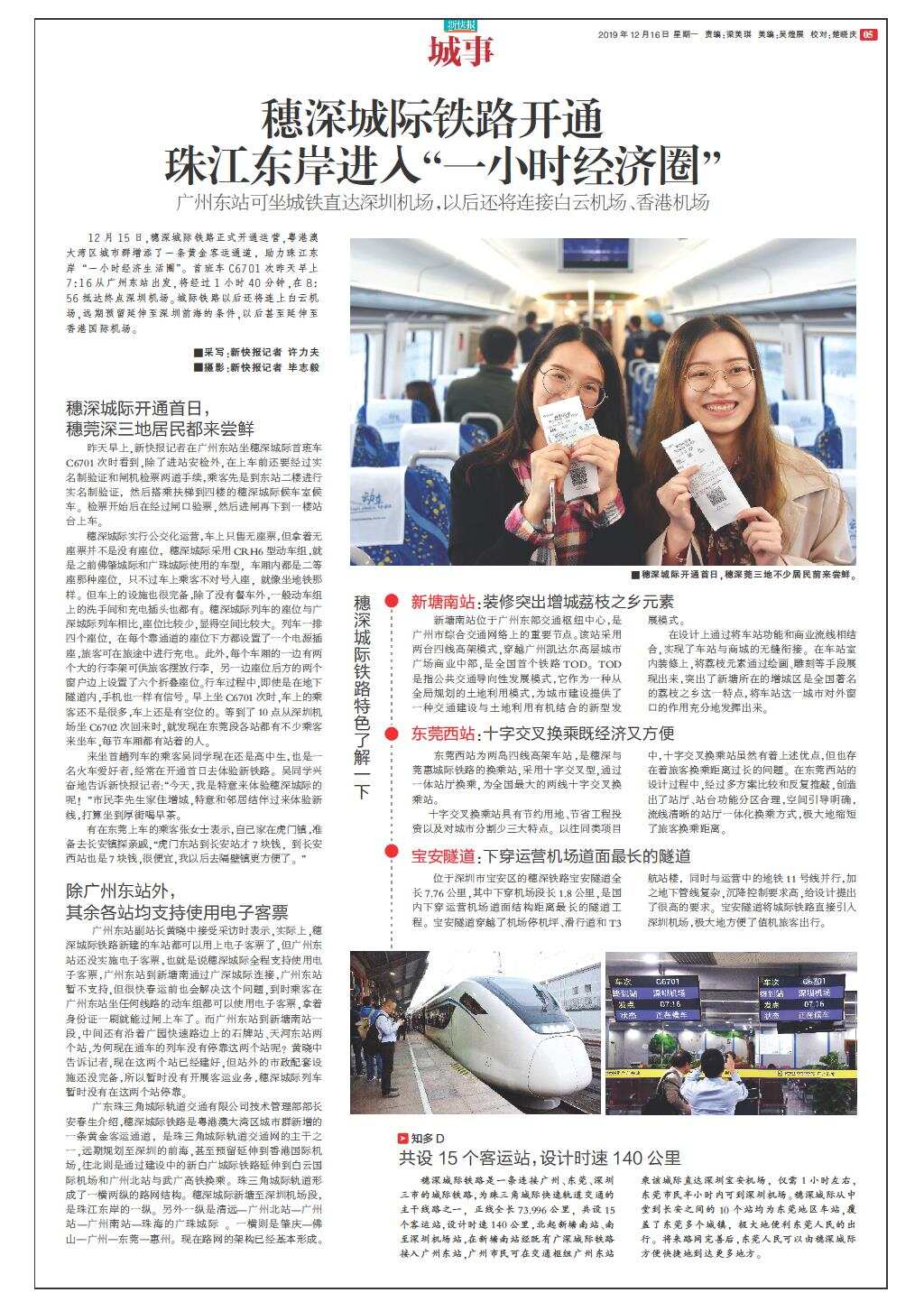 穗深城际铁路开通 珠江东岸进入“一小时经济圈”