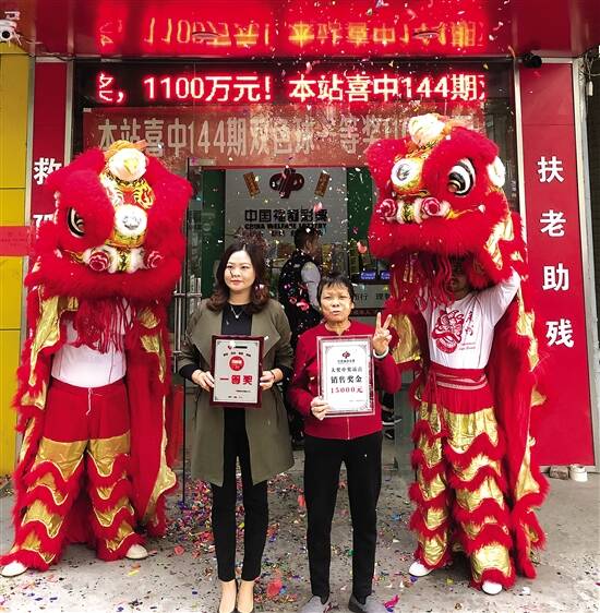 12月15日晚,双色球第19144期开奖中,花都区新华街曙光路的44011245投注站售出的一张924元的“11+1”的自选复式票高中1注1070万多元的一等奖特别奖,由于正进行12亿元派奖,其中375万元为额外获得的派奖奖金,单票总奖金达到1082万多元。