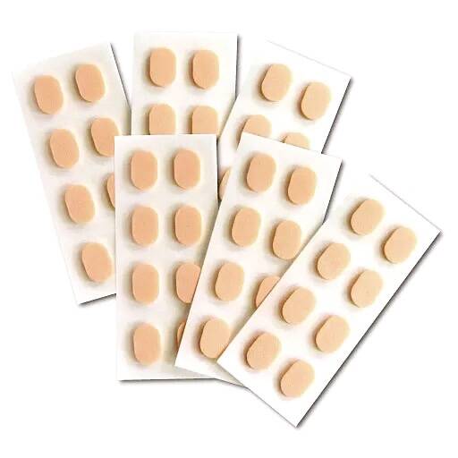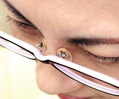 戴墨镜和眼镜后,常会为脱下后留下印子毁掉妆容而困扰,为解决这一问题的粉扑垫鼻托便出现了,与化妆粉扑相近的材质,皮肤相近的颜色,粘在眼镜鼻托位置即可,防止下滑还能帮助鼻梁低的人抬高眼镜。不过不能在硅胶等软鼻托上使用,而且对肤色也会有要求,不然容易“穿帮”。