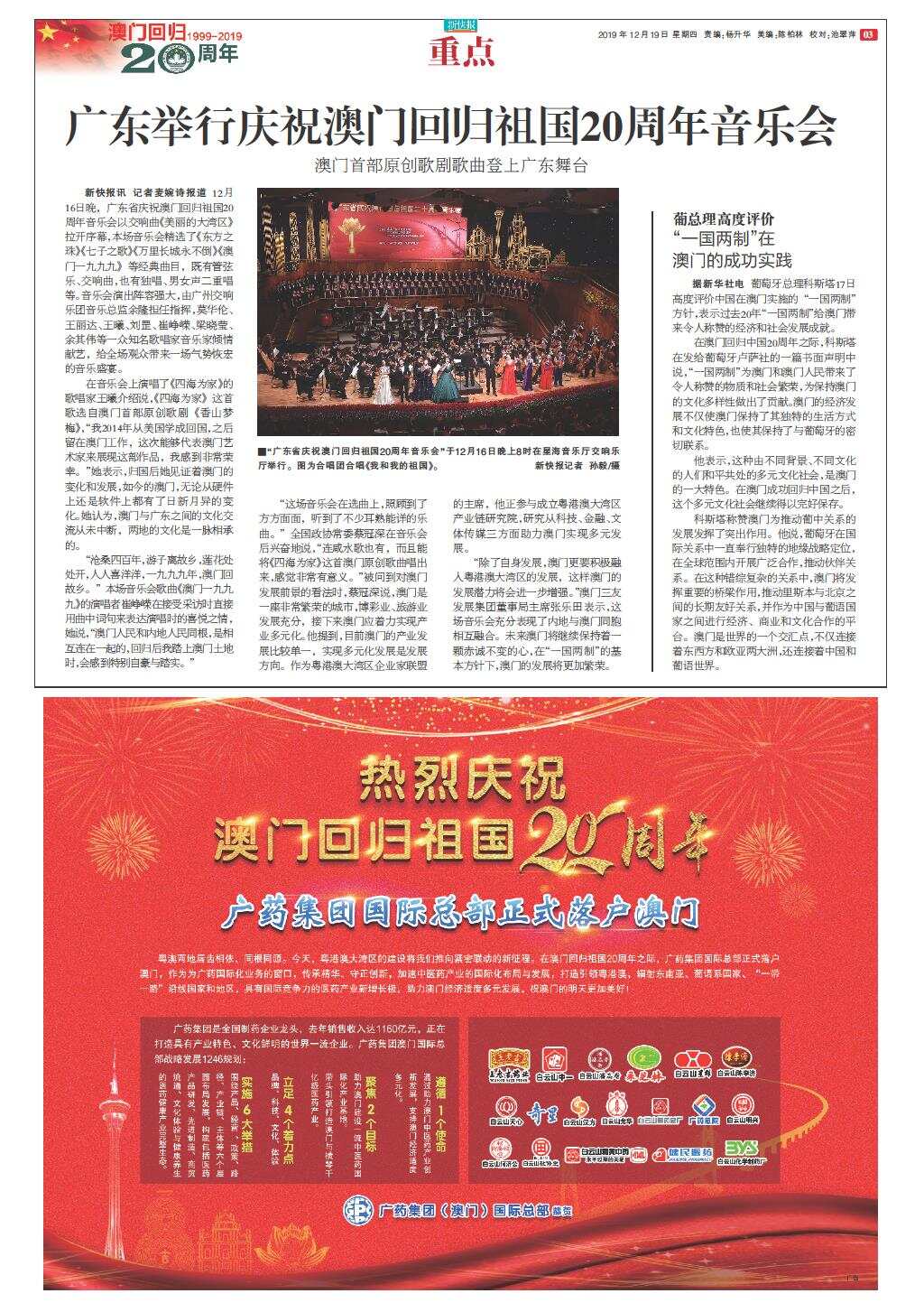 广东举行庆祝澳门回归祖国20周年音乐会
