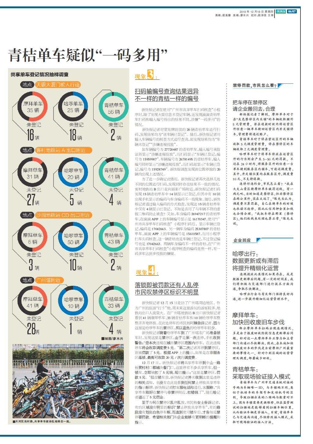 三家企业涉嫌“违规投放” 青桔单车疑似“一码多用”