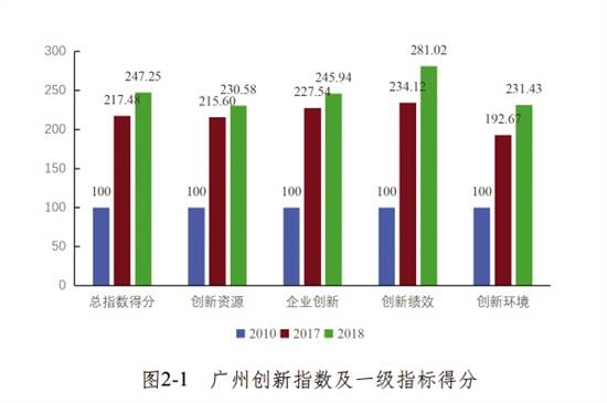 《广州城市创新指数报告2019》从创新资源、企业创新、创新绩效和创新环境4个维(一级指标)对广州市及广州各区创新能力进行了监测和评价,重点监测和评价广州市2010年以来创新发展变化情况。