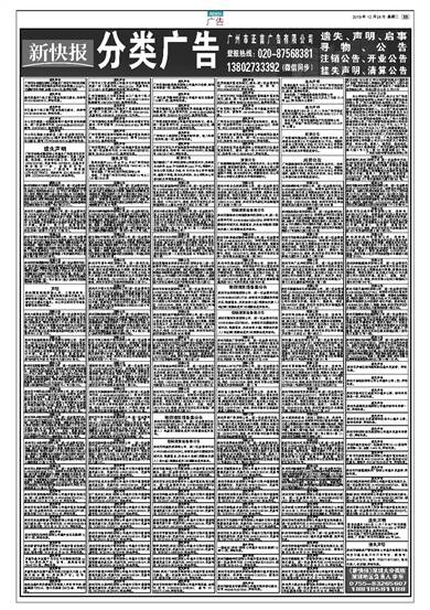 更正公告:2019年12月20日在 新 快 报A27版发布“广东省广州市中级人民法院公告”更正如下:公告内容中“广东省华桥实业发展总公司”更改为:广东省华侨实业发展总公司 。 特 此公告2019年12月24日