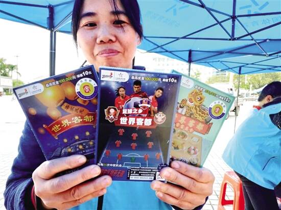在启动现场,记者看到一位女士刮开彩票,竟有10个“客”字。有不少现场购买者感叹,“这款彩票推广我们客家文化,还有足球之乡,我们感到很自豪”“这彩票中奖还算比较容易,小奖很多,好玩,还能做公益,真是一举两得”。