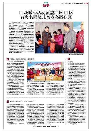 11月25日,“微心愿”物资发放暨关爱困境儿童政策宣传首场活动在广州举行。而后近两个月,广州11个区共征集困境儿童“微心愿”130个,募集6.5万多元善款以及一批家具。