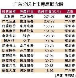 广东分拆上市意愿概念股
