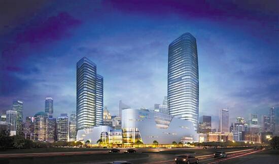 项目打造创新“双L”建筑布局围合中央下沉广场,以曲线包裹的两栋塔楼耸立于裙楼之上,外立面采用全LOW-E玻璃幕墙。在业态规划方面,粤海广场由10万㎡的升级版天河城、5万㎡特色商业体、40层甲级写字楼粤海广场大厦、30层4.5m层高LOFT创意空间组成,集商业、生活、休闲娱乐于一体。