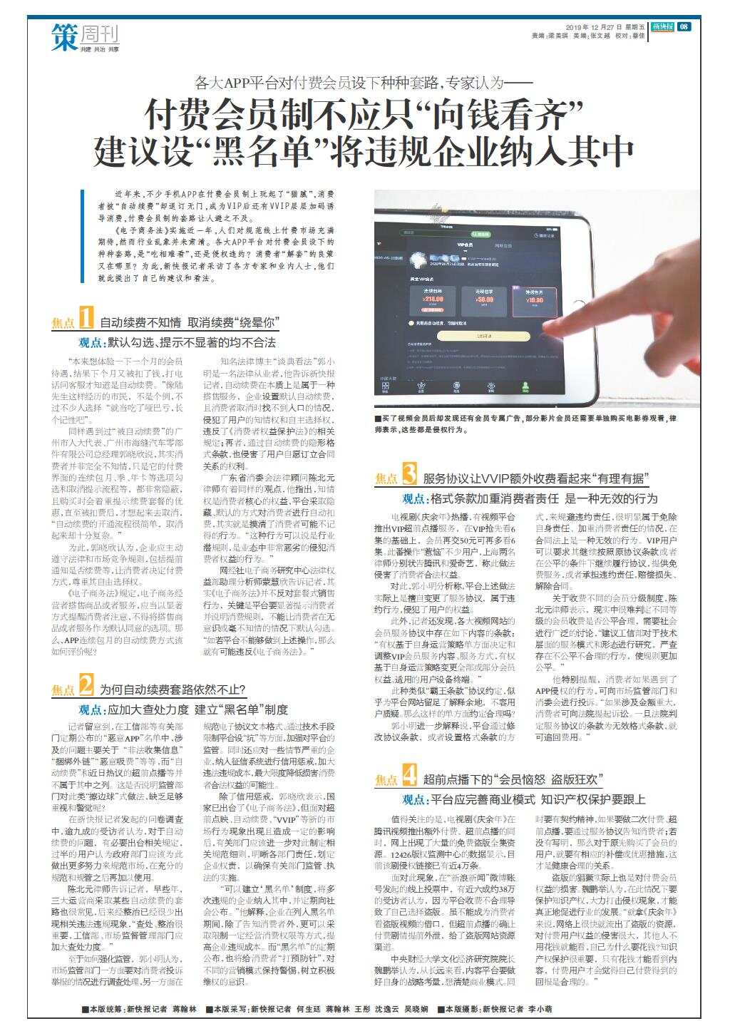 付费会员制不应只“向钱看齐” 建议设“黑名单”将违规企业纳入其中