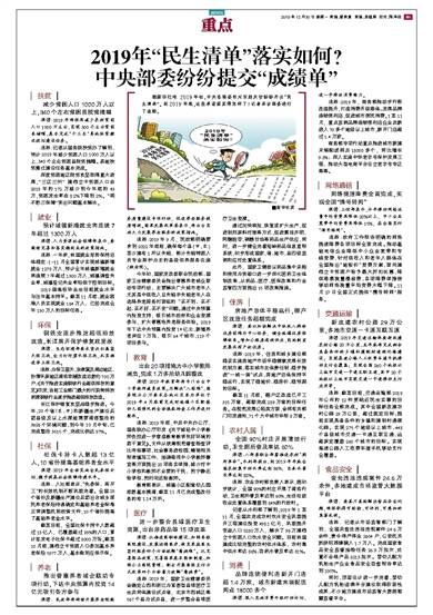 据新华社电 2019年初,中央各部委针对百姓关切纷纷开出“民生清单”。到2019年底,这些承诺落实得怎样了?记者采访部委进行了追踪。扶贫