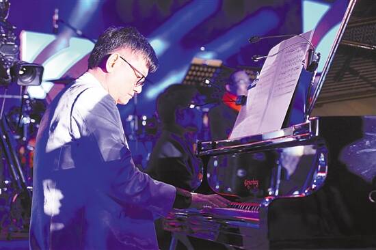 ■李海鹰登台钢琴演奏《七子之歌》。
