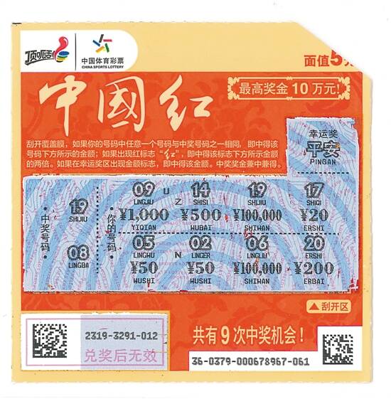 【进入猪年尾声,广州即开票大奖井喷。记者从广州市体育彩票管理中心获悉,12月广州市民中得3个体彩即开票头奖,其中“中国红(5元票)”头奖两个,“麻辣6”头奖一个,奖金均为10万元。■新快报记者 陆妍思】