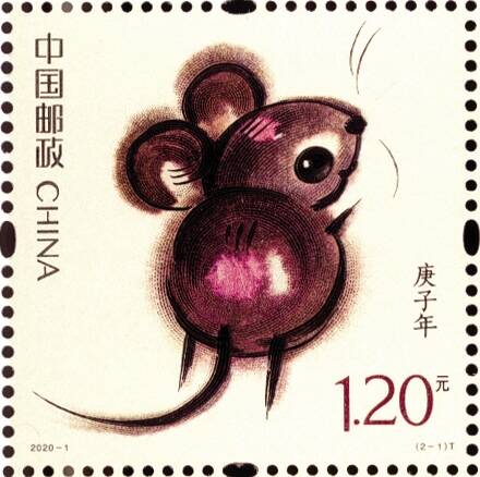 《庚子年》生肖鼠邮票由著名艺术家、“奥运福娃之父”韩美林担纲设计,邮票1套2枚,全套邮票面值2.40元。