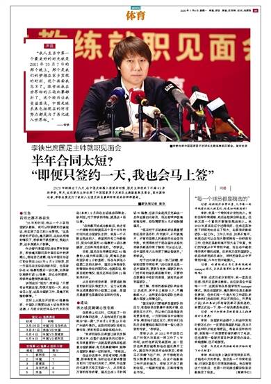 “现在对于足球教练来说最重要的还是你是否行,行你就干,不行就离开,不管你是哪儿的教练你也会尝到失败。我觉得我对于现在国内这些优秀球员都是非常了解的,可以这么说,在中国没有人比我更了解这些球员。”李铁说。