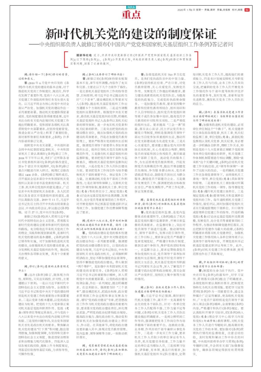 新时代机关党的建设的制度保证