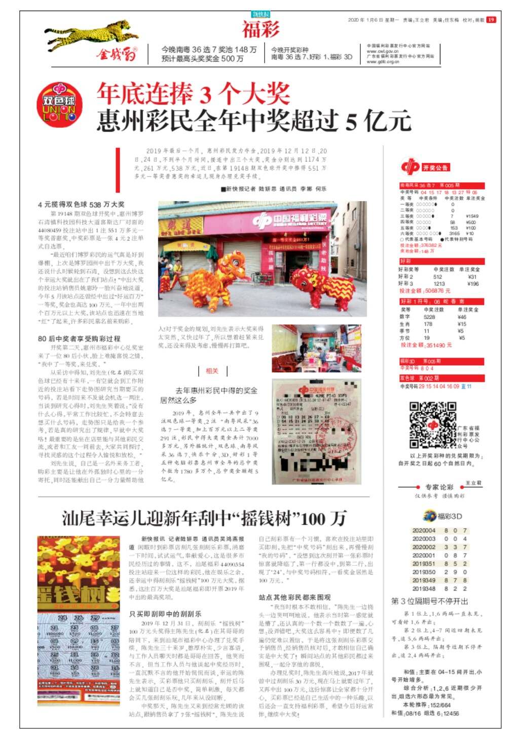 年底连捧3个大奖 惠州彩民全年中奖超过5亿元