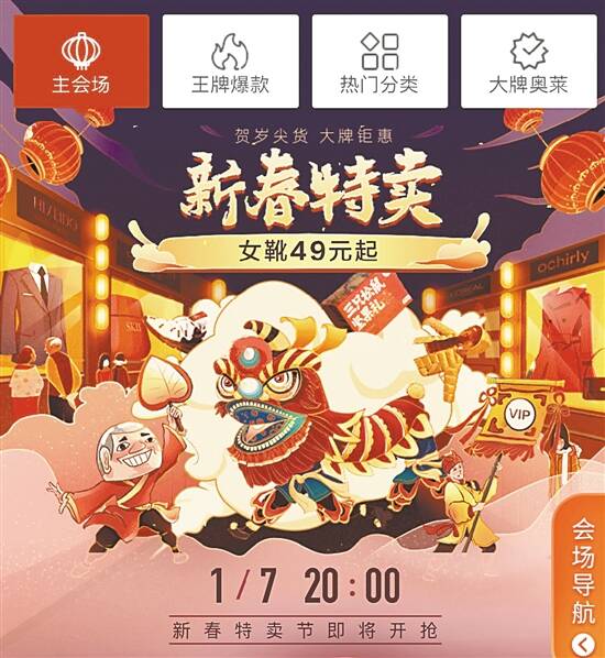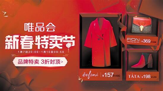 新快报讯 记者郑志辉报道 春节将至,年货好礼怎能少?为回馈3.4亿注册会员和广大消费者,特卖电商唯品会将推出春节前的一次大力度促销——新春特卖节,主打“品牌特卖,3折封顶”,4000家大牌齐齐降价,用品牌特卖的极致性价比,为用户奉送一场畅快采购“大牌好礼”的年终购物狂欢。1月7日晚8点唯品会新春特卖节正式开售,大牌超低价优惠将一直延续至1月10日早10点,此外,“王牌爆款”“大牌奥莱”“新年焕新衣”等专场也将同步上线,一波波满载诚意的超值货品即将放送,闭眼下单也不会买错!