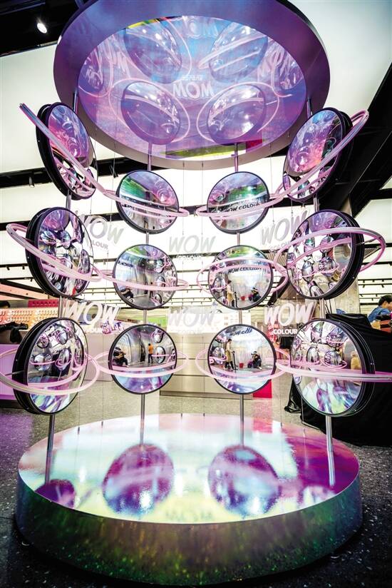 WOW COLOUR集合了多达130个网红国货品牌入驻,门店将未来金属风和甜暖少女心有机糅合,营造出极潮时尚风。近百支唇膏、眼影盘、腮红罗列其中,口红墙、超大号唇釉、WOW星球创意装置等等,都是自拍潮点,颇有社交DNA。此外,WOW COLOUR店面产品按品牌区和爆品区进行划分陈列。在爆品区,基于天猫大数据,WOW COLOUR将Top1-Top20的大热彩妆爆款单品进行展示,让消费者直观了解到目前最夯的爆品彩妆。此外,店内还提供超大比例的彩妆体验区,在体验试色的过程中你还能尽情与闺蜜线上分享独到见解。