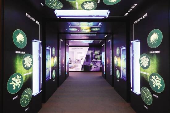 01戴森醛净化体验馆日前现身广州天环广场,旨在向消费者传达戴森针对室内污染,尤其是甲醛问题的有效解决方案。这间外观炫酷的体验馆位于天环广场B2层,体验由一条高科技感十足的通道开始,幻变的图案告诉你家中的空气污染无时不在。